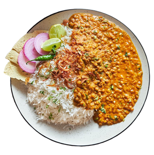 Fragrant basmati rice served with traditional Gujarati tuver dal, infused with a flavorful tadka of curry leaves and fresh coriander.
