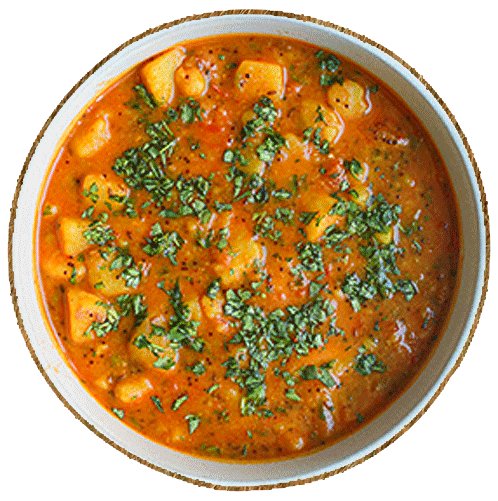 Potato gravy consisting of legumes with a delectable taste of traditional Indian cuisine.