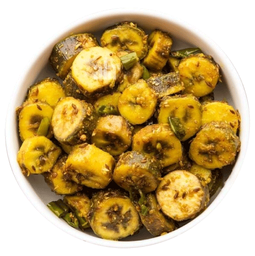 A tasty sabji consisting of crushed raw banana and a variety of luscious spices